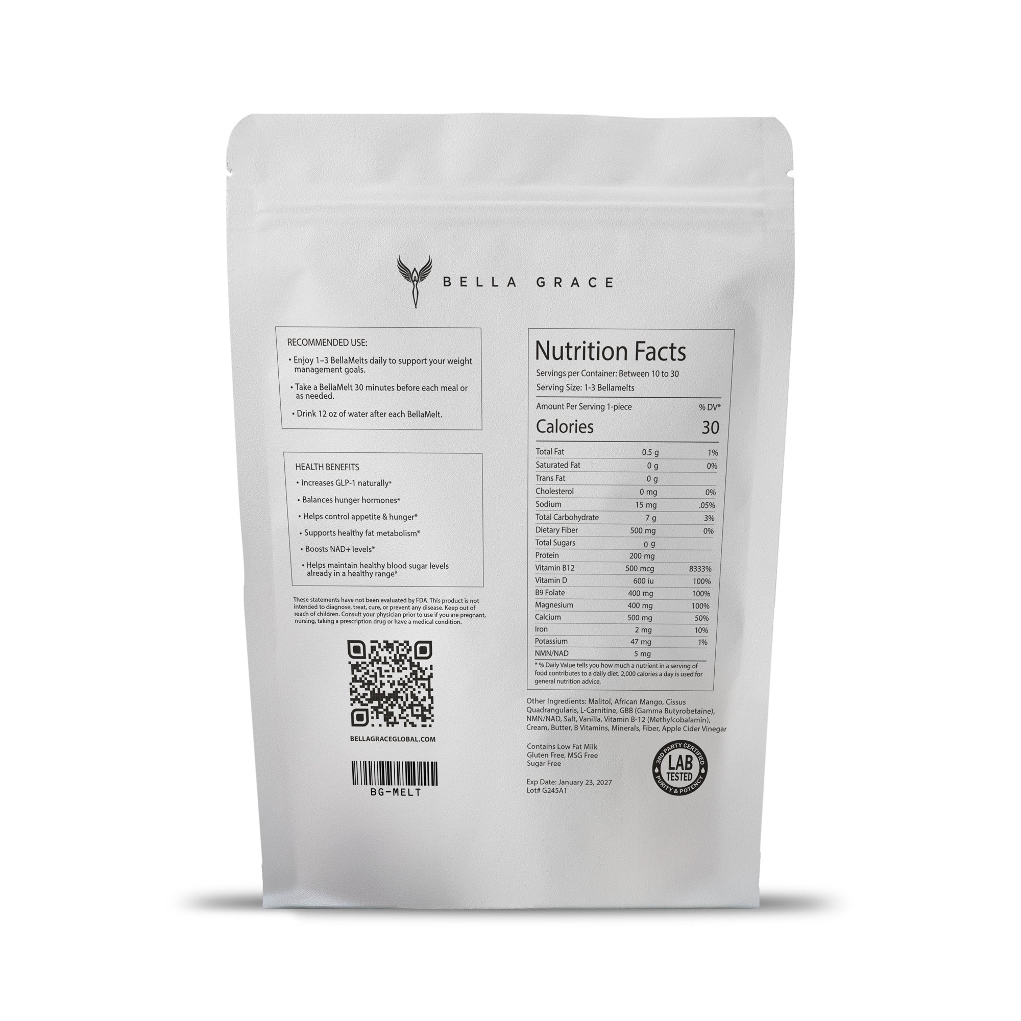 벨라멜트는 강력한 식물성 성분과 필수 영양소가 함유된 달콤한 캐러멜 간식입니다. 각 무설탕 멜트는 신체와 자연스럽게 작용하여 GLP-1을 활성화하여 포만감을 더 빨리 느끼고, 포만감을 유지하며, 식욕을 억제하고, 더 많은 칼로리를 태울 수 있도록 도와줍니다.